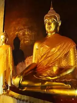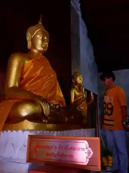 The religious demons found out, so they sneaked in and cut off the Buddha image's head, causing great sadness to the Buddhists of Phetchaburi. Later, they molded a new Buddha head, connected it to the original Buddha image, and restored it with lacquer and gold leaf.