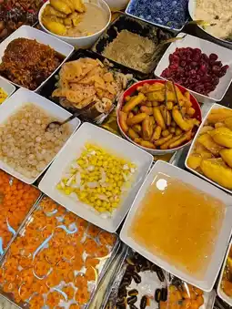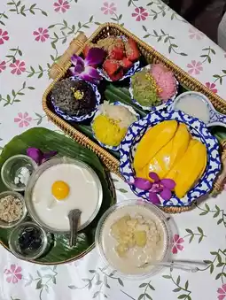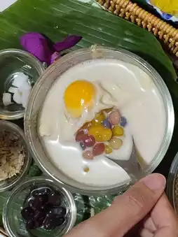 A famous dessert shop in Phetchaburi Province. The shop is located opposite Wat Mahathat. If you come to Phetchaburi and haven't eaten at this shop, it's considered that you haven't arrived yet. It's a big mistake. This shop has been open for more than 50 years and has a variety of traditional Thai desserts. If you stop by Phetchaburi, don't forget to try it.