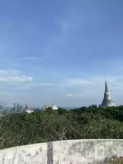 To get to the top of the hill, you can choose to walk along a nature trail or take the electric tram that is available. Once you reach the top of the hill, you will be treated to a beautiful view of Phetchaburi City and the Gulf of Thailand.