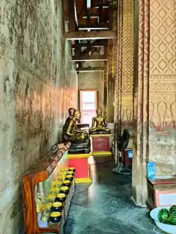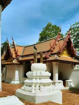 🌸 Wat Yai Suwannaram Worawihan is a long-standing temple in Phetchaburi, renowned for its beautiful and pristine late Ayutthaya architecture. Inside the ubosot (ordination hall) is a magnificent principal Buddha image. The walls are covered in masterful murals, vividly depicting the life of the Buddha. The sermon hall, constructed entirely of golden teak and intricately carved, is one of Thailand's most historically and artistically valuable wooden buildings.