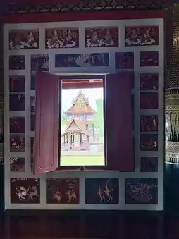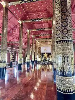 Today, the Teaching Hall stands as a masterpiece of Thai craftsmanship, adorned with finely carved teak panels and timeworn murals that glow in the soft light filtering through its ancient wood. Every beam and carving seems to whisper the legacy of faith, humility, and gratitude that binds teacher and king across the centuries.