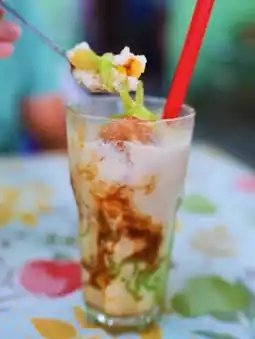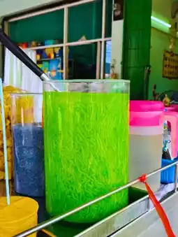 🫖Beyond the outstanding lod chong itself, the restaurant's presentation is even more interesting. It's served with side dishes like taro and black sticky rice, which enhance the flavor and texture. The taro is naturally soft and sweet, while the black sticky rice is deliciously chewy. When everything is combined, it creates a harmonious, fragrant, sweet, and creamy flavor. This is a truly delicious and charming dessert, a true Phetchaburi experience.