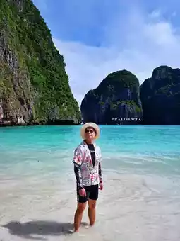 Countdown before Maya Bay closes for restoration on August 1, 2023. Hurry up and go. Let me tell you that it is really beautiful. Maya Bay has crystal clear water, fine, white sand, few tourists, few foreigners. It is best to come now. The park does not allow swimming yet. The coral still needs to be restored and maintained. You can walk and take pictures on the beach.