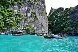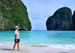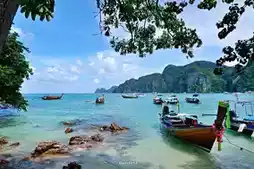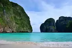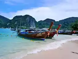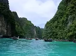 #Maya Bay, you must come once. The most beautiful sea on Phi Phi Island. The sea water is crystal clear like a mirror. The white sand beach is so fine and beautiful that you will almost stop breathing.