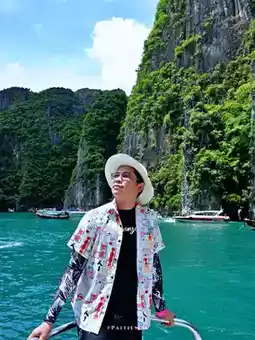 #Pileh Lagoon, take a long-tail boat, see the limestone mountains, take a cool photo of the bow of the boat. The water is very clear. You can go swimming.