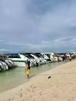 🚢It takes about 40 minutes by speedboat from Krabi (the ferry takes about 1 hour and 30 minutes). Speedboats are good for saving time, but they are a bit expensive, and on days with even a little rain, you have to ride in the rain and wind. Please note.💯