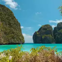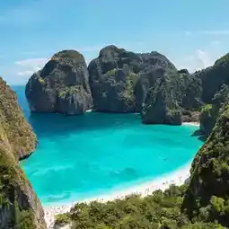 “Maya Bay”, a paradise in the Andaman Sea, is located in Phi Phi Islands, Krabi Province.