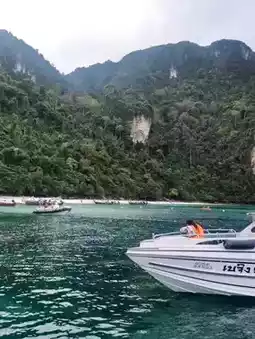 🚤 This morning, we went all out with a Phi Phi Island tour by speedboat! Start with breakfast from the accommodation and then the car will pick you up to the pier at around 8 am and leave the pier for about 45 minutes to the island. Here, they provide free food, water and fruits on the boat. 🍍🍉