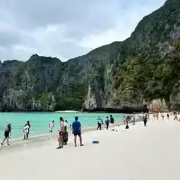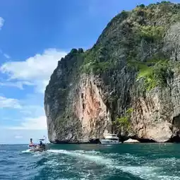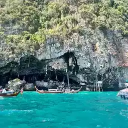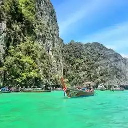 🏝️ The landmarks or highlights here include taking a long-tail boat to see Ao Pileh or Pileh Lagoon, Viking Cave or Swallow Cave, Ao Ling, and seeing the white sandy beach and clear water at Ao Maya, which is a bay famous for filming The Beach, which made this bay famous all over the world.