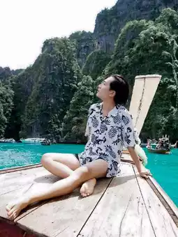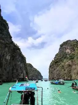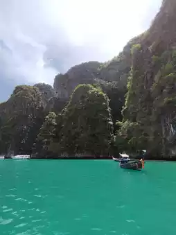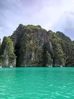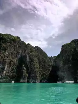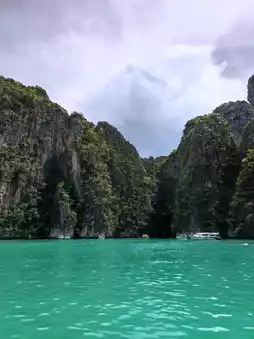The water is crystal clear, emerald green, and you can see stalactites and stalagmites. The scenery is absolutely stunning. If you have the chance, I highly recommend you come and experience new things and create new memories. This is a major tourist attraction on the Phi Phi Islands. Pileh Bay resembles a lagoon.