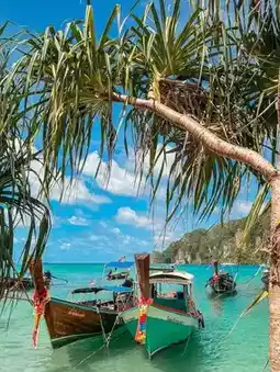 Nestled in the Andaman Sea, Phi Phi Islands are a tropical paradise famous for turquoise waters, dramatic limestone cliffs, and stunning beaches. 🏖️💙 Explore Maya Bay, the breathtaking location from The Beach movie, or snorkel in the vibrant coral reefs of Pileh Lagoon. 🐠🏊♂️ Hike to the Phi Phi Viewpoint for a panoramic sunset 🌅 or enjoy the island’s lively beach bars and fire shows at night. 🔥🍹 Whether you're seeking adventure or relaxation, Phi Phi Islands offer the perfect escape! Are you ready for an unforgettable island getaway? 😍⛵