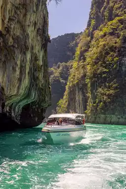 The guide will explain safety precautions, and then you'll take a speedboat directly to Phi Phi Islands (about 1 hour voyage, enjoying the beautiful scenery of the Andaman Sea along the way)