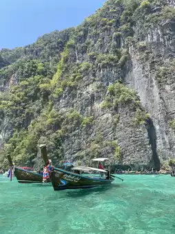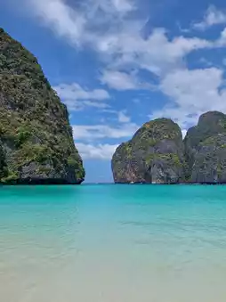 Maya Bay is located in the area of Hat Noppharat Thara National Park. Here, the sea water is clear and emerald green, captivating the eyes. If anyone is lucky, you may see a little shark swimming. It is believed that anyone who comes here will fall in love with Maya Bay.