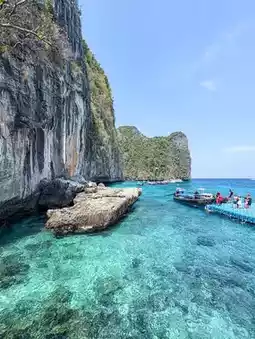 Island hopping around Phi Phi Islands was honestly one of the best adventures I’ve had! We kicked off the day early and set off to explore the stunning beaches and crystal-clear waters. Our first stop was Monkey Beach, where we saw some wild monkeys—super cute but a little cheeky! Then we jumped into the water for some snorkeling, swimming alongside colourful fish and vibrant coral.