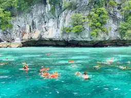 #TravelEco-Friendly The entire journey, the water is beautiful and the sea is crystal clear. Drinks🥤 and fruit🍌 are provided throughout the trip, and a buffet lunch is included. We had a ton of fun because the boat ride, swimming, and taking photos📸 were all very energizing!
