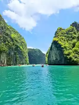 Maya Bay, located on Phi Phi Leh Island within the Hat Noppharat Thara–Mu Ko Phi Phi National Park in Krabi Province, is a world-renowned natural tourist destination. Its breathtaking scenery features a crescent-shaped bay surrounded by towering limestone cliffs, pristine white sandy beaches, and crystal-clear emerald waters, leaving an unforgettable impression on visitors.