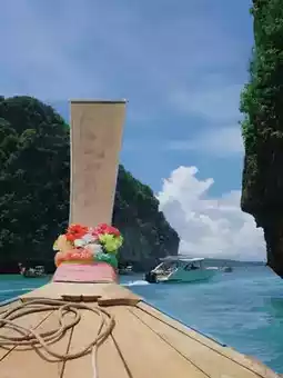 Later in the afternoon, we visited Maya Bay, the iconic location from the movie "The Beach." The scenery was spectacular, and taking photos on the beach was incredibly satisfying. We also cruised past the "Rock Bridge in the Sea" and Captain Cook before heading to the final island.