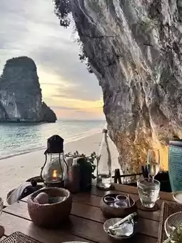 For dinner on the last day, I had dinner at "The Grotto" at Rayavadee Resort. I had actually planned my Krabi trip knowing I had to visit this restaurant, but enjoying dinner in a cave restaurant while watching the fiery sunset was one of the most unforgettable moments.✨