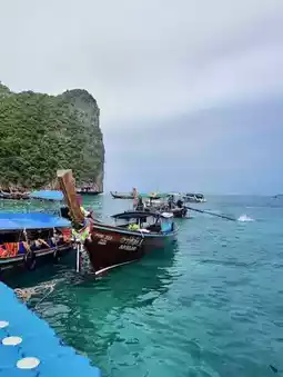 For photography enthusiasts, Maya Bay is a dream location! 📸 Every angle is so stunning, no filters needed. The turquoise waters and towering limestone mountains create a unique backdrop. 🌴 Whether you're traveling with friends or solo, you're sure to get some stunning photos. 💕 In the afternoon, the sun begins to soften, and the light reflects off the sea, creating a golden glow. The cool, refreshing air is perfect for chilling on the beach, listening to the waves, and letting your mind drift away with the breeze. 🌅 This is one of those places that never fails to excite you.