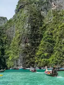 Maya Bay is a famous bay located on Koh Phi Phi Leh in Krabi Province, Thailand. It is known worldwide for its appearance in the movie "The Beach," starring Leonardo DiCaprio.