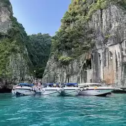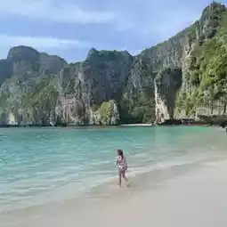 But I must say that we just visited Maya Bay after it was closed during the COVID-19 outbreak. When we got there, it was so beautiful!!! We loved it. The water was crystal clear, the sand was white and soft, and it didn't hurt our feet. Every angle we took pictures from was beautiful. Another thing is that it looked peaceful and not chaotic because they didn't allow boats to park in front of the beach because it would destroy the nature there. When we looked out in front of us, we saw a really beautiful sea. Maya Bay is the best.