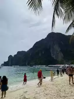 Even though the weather was a bit cloudy on the day I visited, the emerald water color was very beautiful. The combination of the sea color, high cliffs, and palm trees, which were different from Phuket Main Island, made me feel like I was in paradise. I highly recommend Phi Phi Island to travelers visiting Phuket.