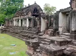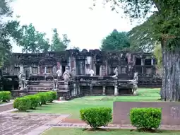 ✔️ The park contains several fascinating structures, including a pavilion located in front of the outer wall. On the left side of the pathway leading to the main castle, there is a rectangular building formerly known as the "Treasury." Additionally, the park features the Naga Bridge, situated at the southern entrance of the castle. The bridge is made of sandstone, with its railings sculpted into seven-headed Naga serpents. Other notable elements include the gateway and the sacred enclosure wall.