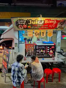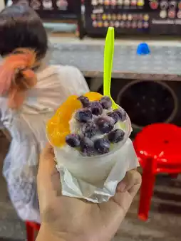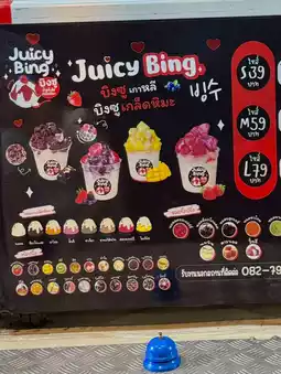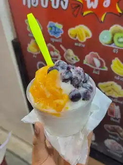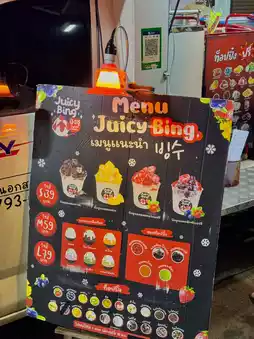 #GetDiscountsWithoutLuck! This small roadside bingsu shop in Phitsanulok is called Juicy Bing. They offer three sizes: S, M, and L, so you can choose your favorite. The shaved ice comes in a variety of flavors, including fresh milk, chocolate, Thai tea, green tea, Taiwanese milk tea, and even strawberry. You can choose your favorite toppings. The flavors are absolutely delicious! If you're passing by, stop by and enjoy!