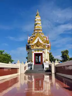 "Phitsanulok City Pillar Shrine," a sacred object of Songkhwae City, is located in the heart of the city. It houses a sacred object that holds the spiritual support of the people of Songkhwae. It is enshrined on the Nan River in Mueang District, Phitsanulok Province, on the west bank of the city. Built on April 8, 1997, it is the pillar of the Phitsanulok Provincial Court. Made from various auspicious woods, it was donated by Luang Pu Ngoen Sorayo. This pillar was carved in the style of the Fine Arts Department. It stands 3.29 meters tall and is lacquered and gilded to prevent cracking. The pillar was consecrated at Wat Phra Kaew (Temple of the Emerald Buddha). If you're passing by, we recommend stopping by to pay your respects for good fortune before exploring Phitsanulok.