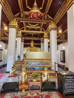 3. Phra Wihan Phra Chao Khao Nipphan: Situated south of the Phra Phuttha Chinnarat hall, this vihara houses a symbolic coffin containing the relics of the Lord Buddha. Inside, a golden depiction of the Buddha's passing is worshipped by a figure of Maha Kassapa Thera.