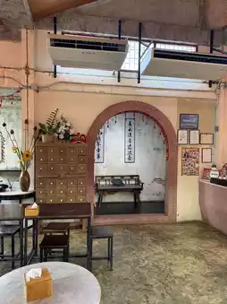 Discover a riverside cafe that has renovated the former shrine of the Goddess of Mercy into a cafe. The shrine's structure has been preserved as much as possible and blended with a contemporary Chinese style for a modern twist. The arched roof, red lanterns🏮, and Chinese motifs are preserved throughout. There are plenty of photo opportunities, and the overall atmosphere is chill and perfect for relaxing.