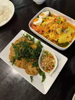 This post is about a delicious restaurant we stopped at after returning from Phu Soi Dao, which was just on our way back. This restaurant serves a wide variety of dishes, including Thai and Isaan cuisine. They also have live music, which is very chill. Every dish we ordered was truly delicious. Some dishes arrived so quickly that we didn't even have time to take photos. For example, the catfish tom yum was incredibly delicious. Our favorites were the som tam and yum, which were incredibly delicious and spicy. The restaurant prepares food quickly, the staff are friendly, and there's plenty of seating in several areas. Parking is also convenient. If you're passing through Phitsanulok, give it a try! Guaranteed deliciousness!