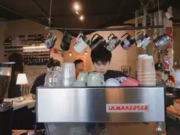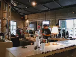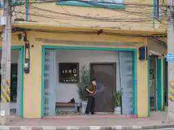 The café is decorated in a very classic and stylish manner, standing out with its yellow building located at a corner near the market. There are plenty of photo spots.