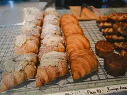 The interior is also classic. For drip coffee lovers, they offer it inside as well. The pastries are plentiful and delicious, with croissants looking particularly appetizing. Every corner is perfect for photos. The prices for drinks and pastries are reasonable. This is definitely a recommended café.