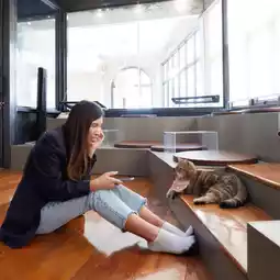🐱 Groom Cat Craft Cafe, a cafe for cat lovers in Phitsanulok Province. On the second floor, the cafe welcomes all visitors with their own cats. The ground floor is a cafe area where you can enjoy coffee and snacks. Both coffee and non-coffee drinks are available. After a drink or snack, you can play with the cats. However, you're not allowed to bring anything inside. There are many cats of various breeds. We recommend arriving early in the morning, as if you're late, the cats might be tired from entertaining you.