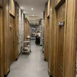 The upstairs is a private room with a stove next to it for a dedicated person to grill food