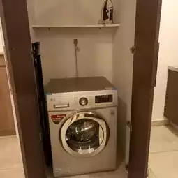 - The room is equipped with a washing machine, iron and ironing board, which is very convenient.