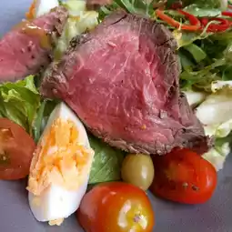 - The restaurant also provides salads, pasta, bread and cakes. I especially like their roast beef salad and carbonara pasta.