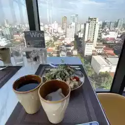The food served at restaurant at level 14 was delicious and price was reasonable. Breakfast was good too. The views are very good. There is a jacuzzi at the highest level. You may also see sunrise and sunset there. The room comes with a nice drawing in the wall. The staff are helpful and was given a late check out with no extra costs. The place is quiet but tuk tuk are easily available.