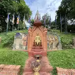The temple grounds include the Phnom Pagoda, 76 meters high, standing out majestically, 5 large Buddha images enshrined in the chapel on top of the hill, and a beautiful, shady garden surrounding the temple.