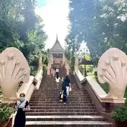Make your way to the iconic Wat Phnom, perched on a hilltop and surrounded by serene gardens. Climb the staircase to the temple and be greeted by the melodious calls of the wreathead hornbills, the feathered residents of this sacred place. Take a moment to absorb the tranquil atmosphere and enjoy breathtaking views of the city. 🌳🏞️