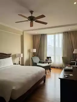 Sofitel Phnom Penh Phokeethra Hotel 👙🏩 The room was great with a great view of the city and a beautiful balcony to relax in (it was spacious and had all the amenities!!)😇🎊 The room itself was bright and airy with a very comfortable king size bed🥹💗It was a really great experience and I don't think there's a better place in Cambodia😍
