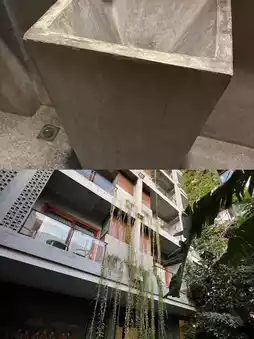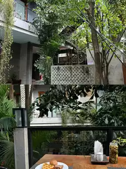 The plants in the courtyard were lush and swaying in the wind