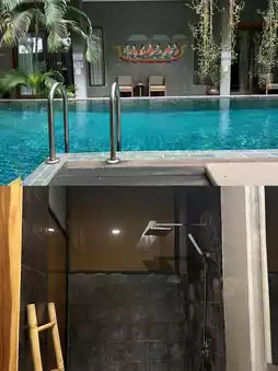 The quiet and secluded pool was shimmering in the sunlight