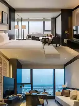 I was arranged in a deluxe room, the elevator went directly to the room floor, the corridor was quiet and clean, and it was decorated with elegant artworks. Opening the door of the room, the first thing that catches the eye is the spacious space and neat layout. The interior decoration is simple and modern, with soft colors, equipped with high-speed wireless internet, large-screen TV and a fully equipped work area.