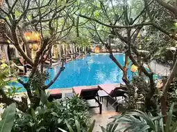 There are many trees and it feels like you are in a forest in Cambodia. The breakfast is delicious and the rooms are clean and spacious. The price is also good. The pool is nice and there is a sky bar so you can relax at the hotel.