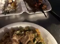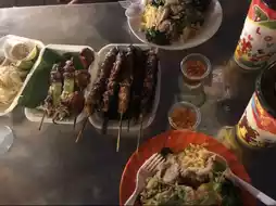 We ordered some barbeques and rice toppings. Others sit on mats to enjoy conversing more.