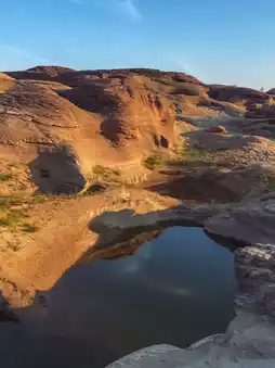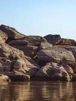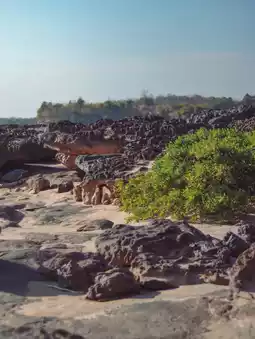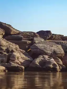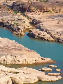 Sam Phan Bok is a rocky rapids or cliffs under the Mekong River in Pho Sai District, Ubon Ratchathani Province. It was formed by the force of the whirlpools, which eroded into more than 3,000 pools. They appear during the dry season when the water level dries up. These rapids will emerge from the water like mountains in the middle of the Mekong River, so the locals call them the Grand Canyon of the Mekong River. This phenomenon occurs from around October to May. After that, the rapids will flood and submerge the rapids.