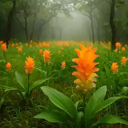 This trip was filled with the freshness and wonder of nature! We began by strolling through a field of orange-colored Krachiao flowers blooming amidst the morning mist. The vibrant orange color contrasted with the lush green of the forest, creating a breathtaking beauty. 🌸