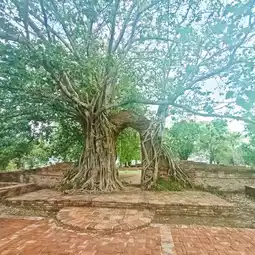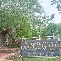 Wat Phra Ngam in Phra Nakhon Si Ayutthaya Province boasts an ancient archway surrounded by Bodhi trees, over 100 years old, earning it the nickname "The Gate of Time." Inside, Wat Phra Ngam houses an octagonal chedi, the principal Buddha image. Surrounded by a wall and moat, the temple is a must-see for stunning views of the sun shining through the archway. Visit around 6:00 PM or around 6:00 AM for a stunning view of the sun shining through the archway. The temple grounds are relatively peaceful, and not crowded with tourists like other temples in Phra Nakhon Si Ayutthaya Province. A must-see.